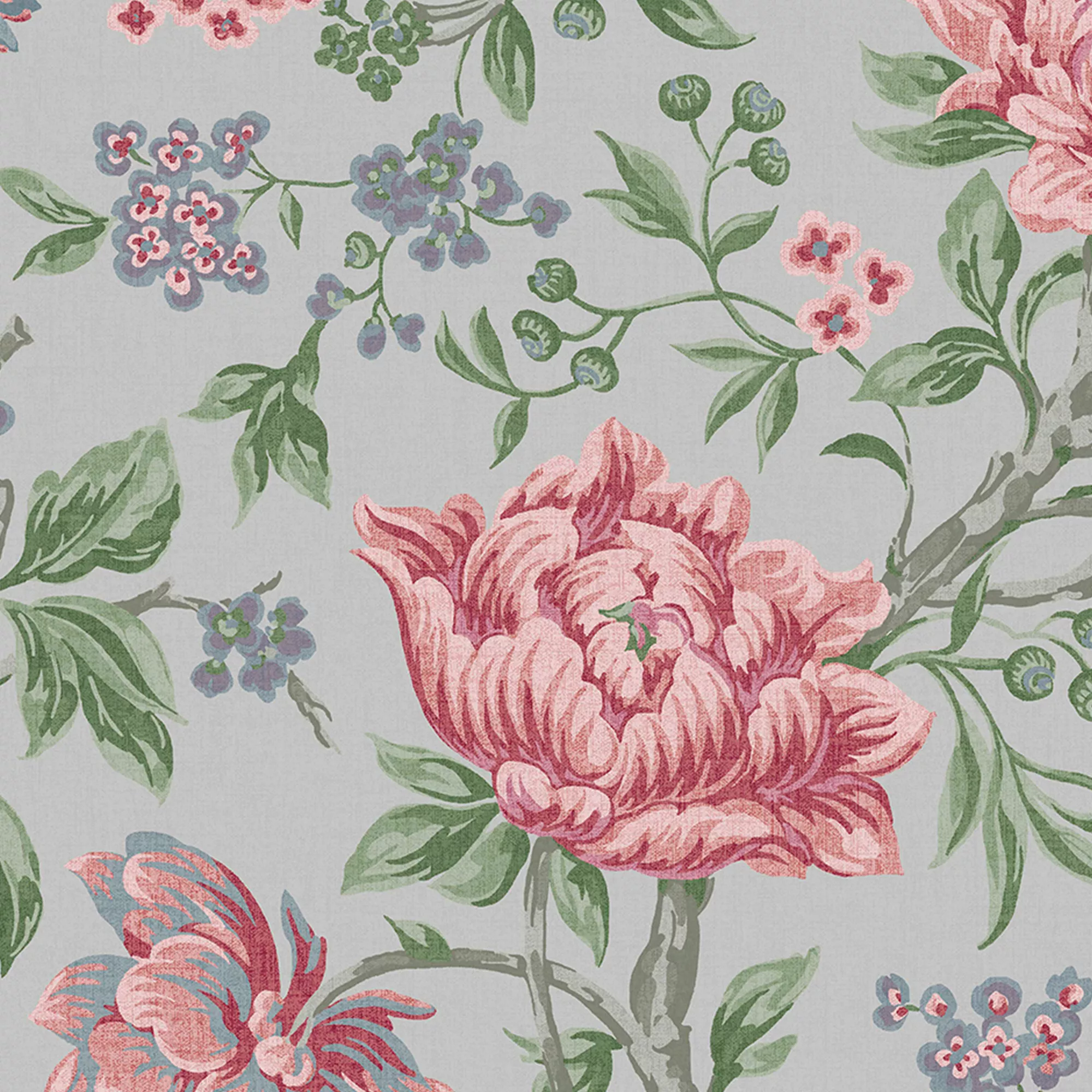 Tapestry floral represents a beautifully traditional, hand woven rustic floral design, with a contemporary twist in a soft muted grey colour palette.